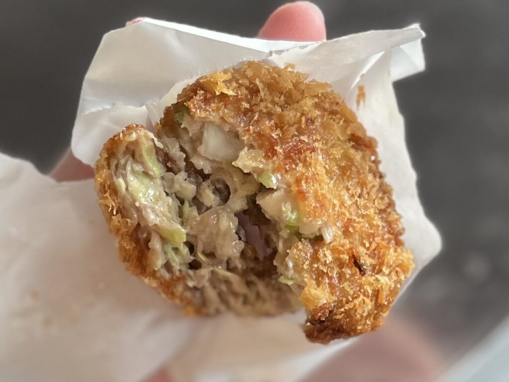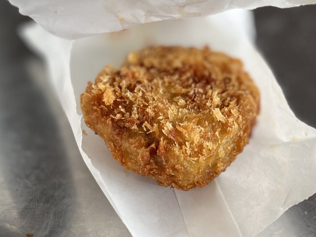 嘉穂牛と糸島豚を使用したメンチカツです。注文してから揚げるので、熱々です!!