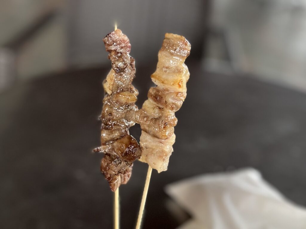 多めの塩胡椒でシンプルに味付けされた牛串は、肉肉しいのに、ジューシーです!!