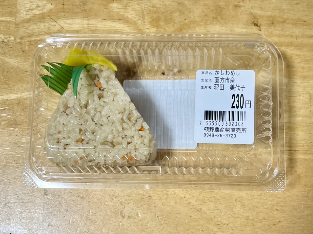 かしわおにぎりです。鶏肉、ごぼう、人参の定番具材入りです。本来は2個入りです…そうです、写真を取る前にたべてしまいました(すみません)。