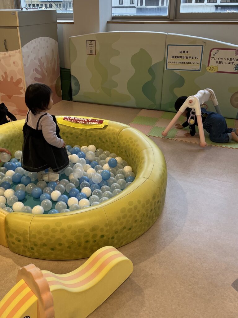 おままごと・知育玩具などのおもちゃ、ボールプール、滑り台、0才児優先コーナーなど、本当にいろいろあります。トイレもあります。