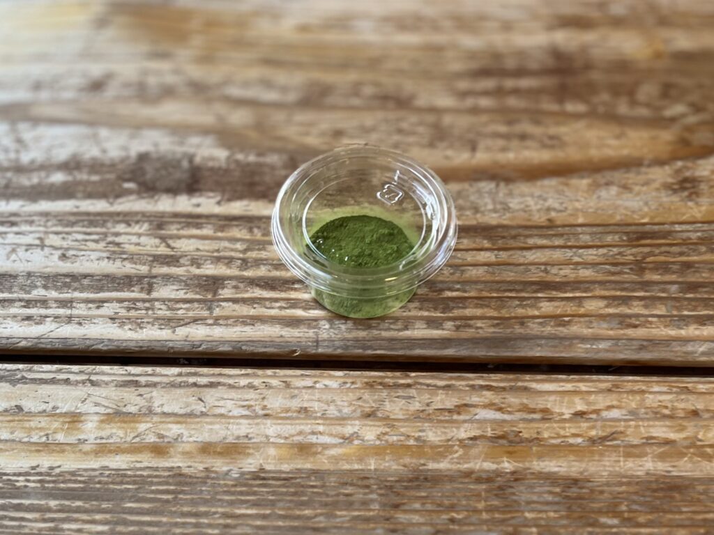 簡単な説明の後、茶葉が入った臼を回していきます。少しずつですが、サイドから粉末状のお茶が出てきますo(*≧∀≦*)o