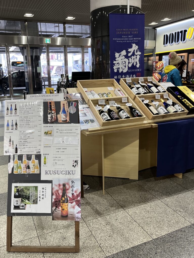 普段はこちらのお店で、素敵なおばあちゃま(勝手にそう呼ばせていただいています)とお話ししながらの角打ちを楽しめるのですが、12月26日から30日まではJR小倉駅構内で開催。最終日に参加させていただきました。