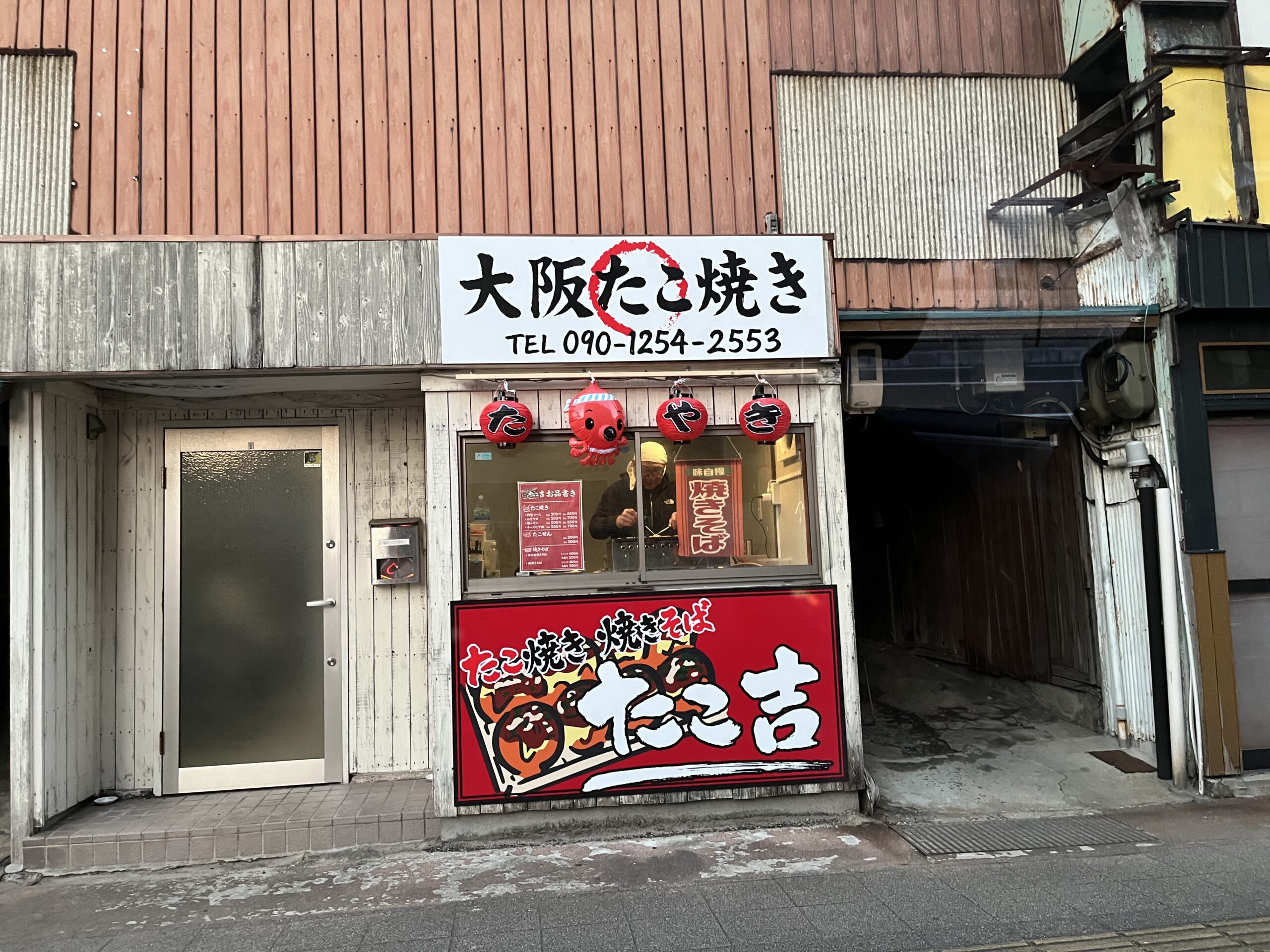 注文は、通り全面に面した窓・鉄板、その向こうで焼いている男性に声をかけます。