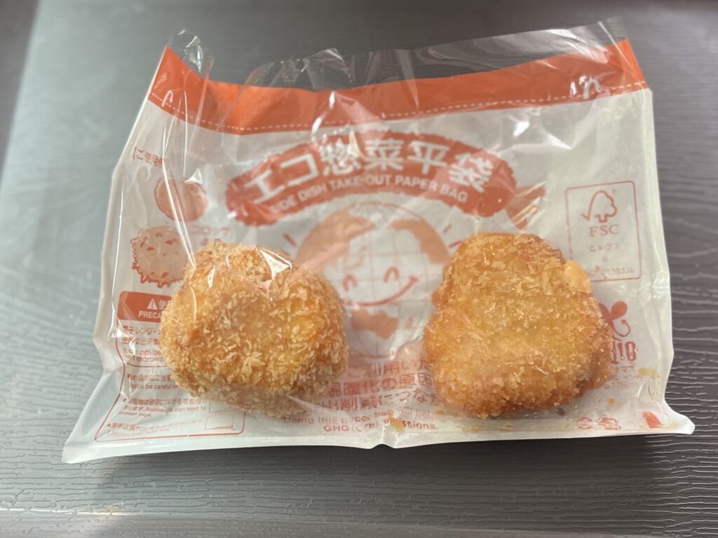 時々薄くてパサパサしている残念なものもありますが、こちらのチーズフライは、肉厚で胸肉とは思えないほどふっくら&ジューシーです!美味しいので、もう少し大きかったら嬉しいな。